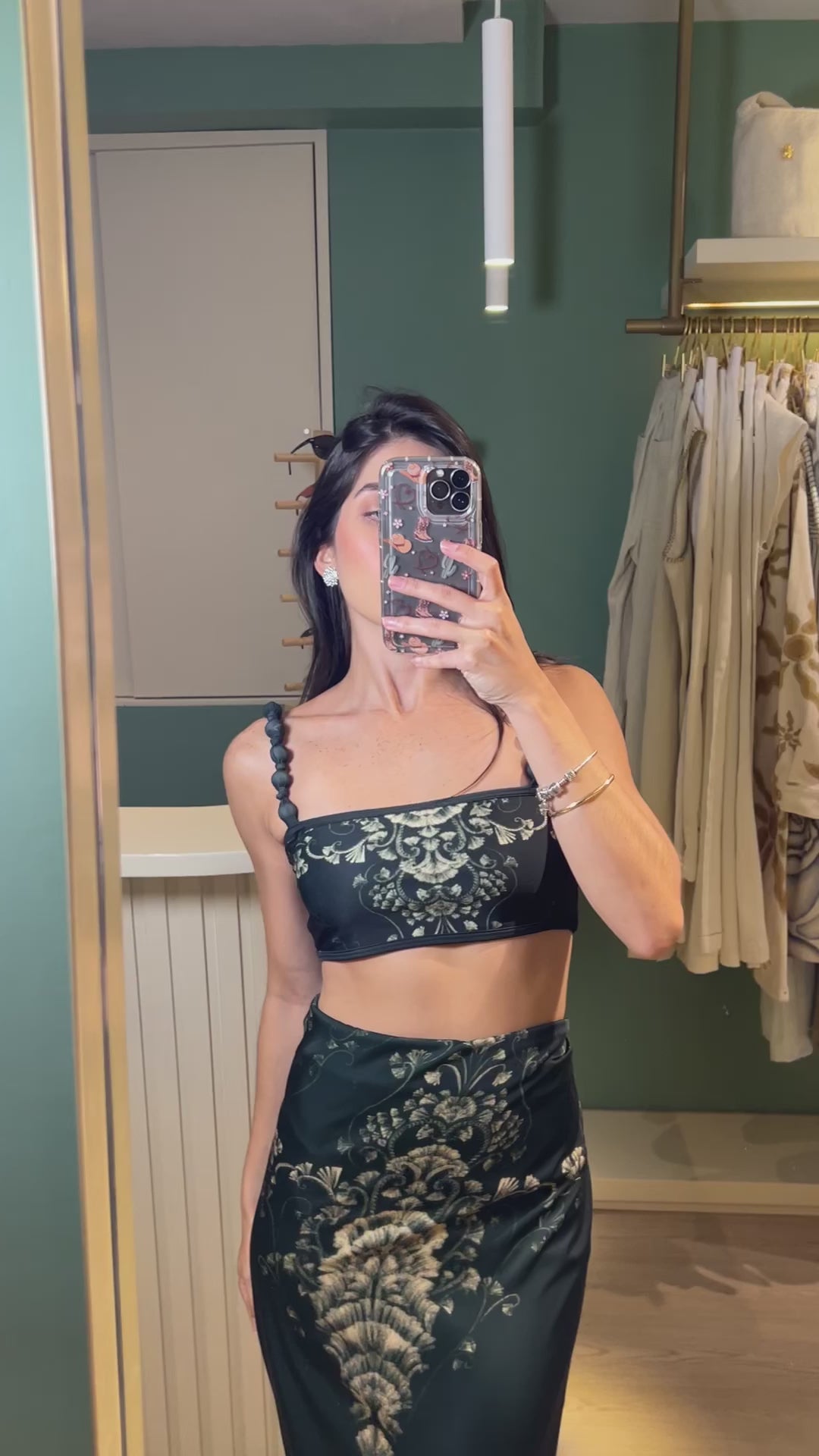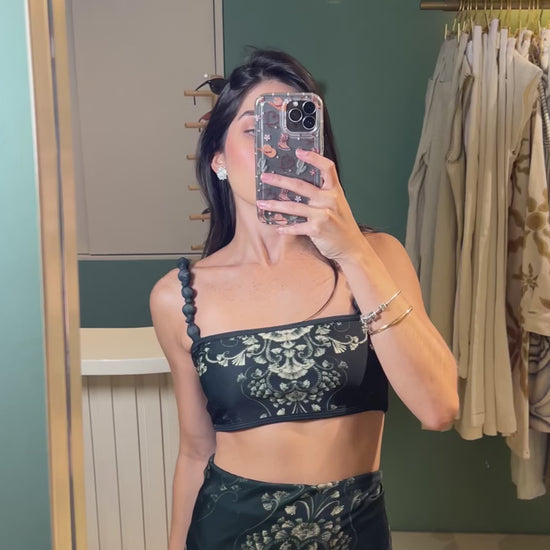 Pareo esmeralda que puedes usar como falda. Un statement piece infaltable en tu closet, con un print atemporal que nunca va a pasar de moda. Combínalo con nuestro enterizo Selva Esmeralda o tu top favorito.